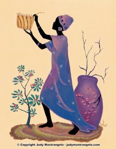WEAVING BASKET IN PURPLE DRESS
