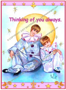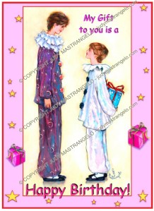 Pierrot Friendship and Birthday Cards Big and Little Pierrots Birthday Cake Giving Present Holding Present Sitting at a Table Standing on the Moon Writing Letter Wrapping Present Share this: Click to share on X (Opens in new window) X Click to share on Facebook (Opens in new window) Facebook Click to share on LinkedIn (Opens in new window) LinkedIn Click to share on Pinterest (Opens in new window) Pinterest Click to share on Tumblr (Opens in new window) Tumblr Click to share on Reddit (Opens in new window) Reddit Like Loading...